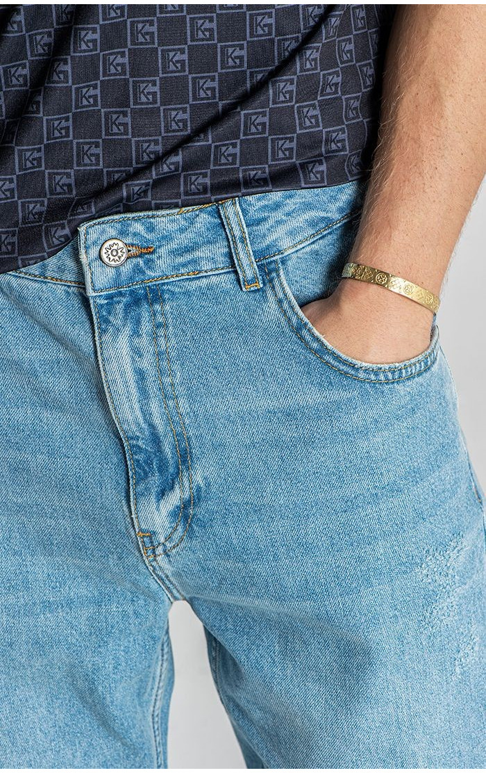 Gianni Kavanagh Pánské Světle Modré Jeany Ripped Straight-Leg