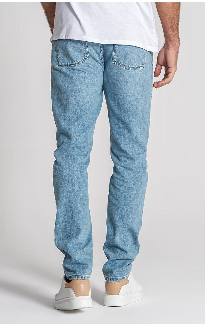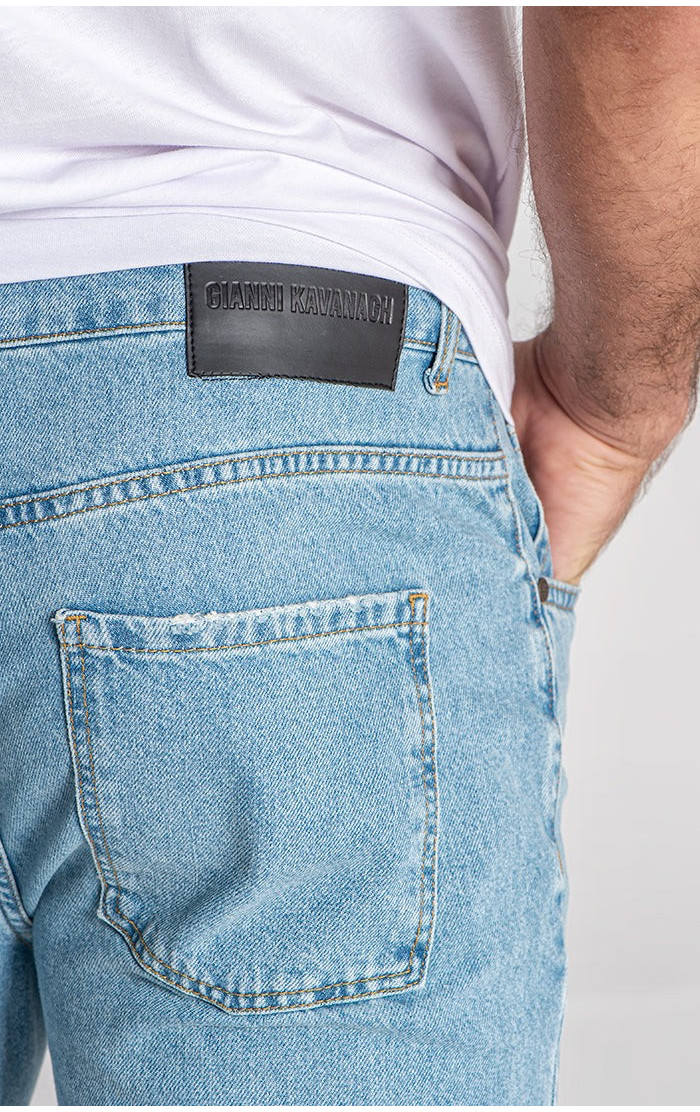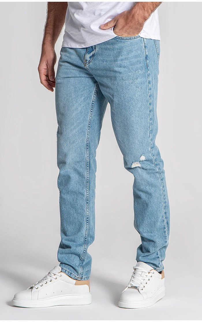 Gianni Kavanagh Pánské Světle Modré Jeany Ripped Straight-Leg