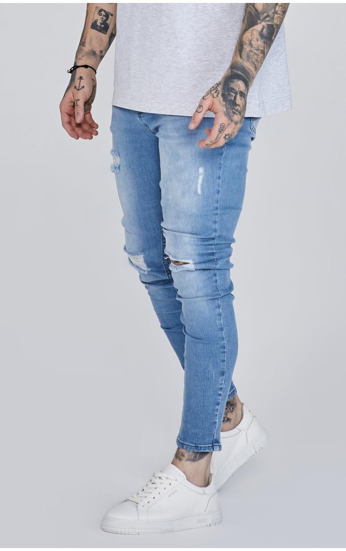 Sik Silk Pánské Modré Jeany Distressed Skinny