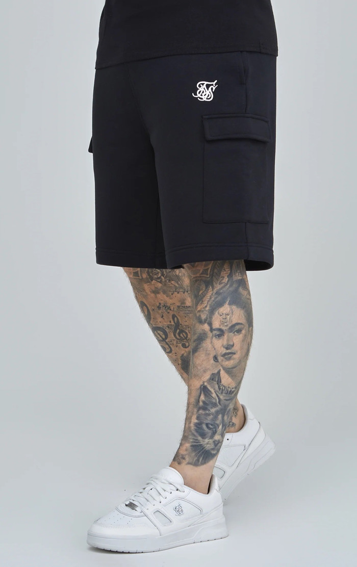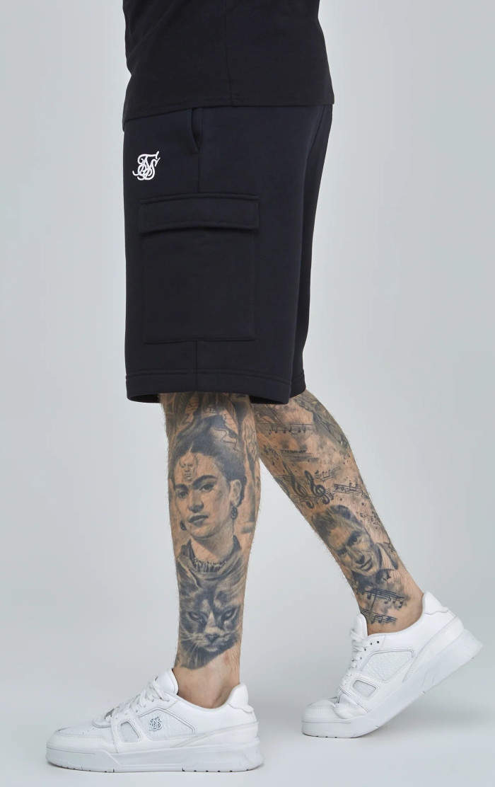 Sik Silk Pánské Černé Kraťasy Essential Cargo Fleece Short