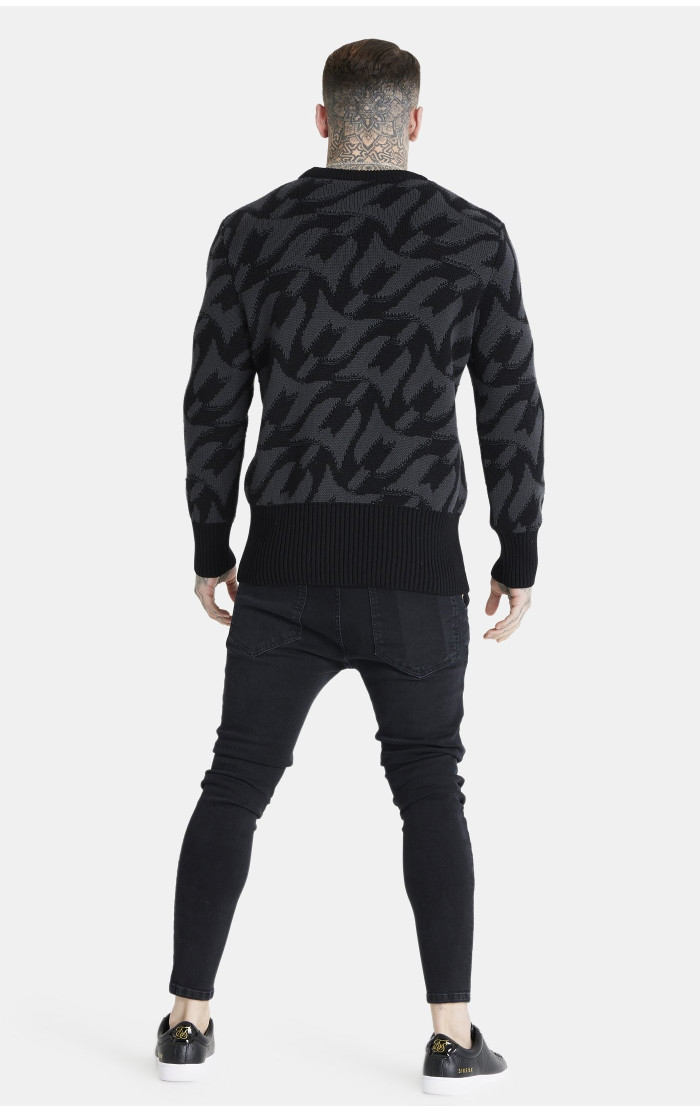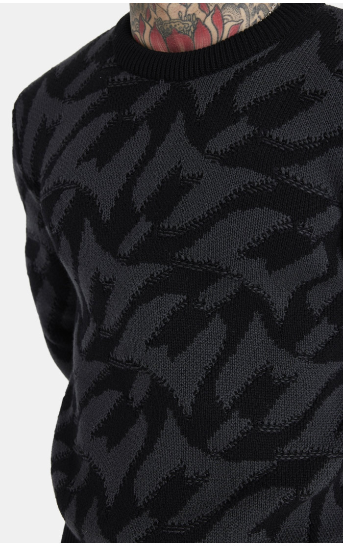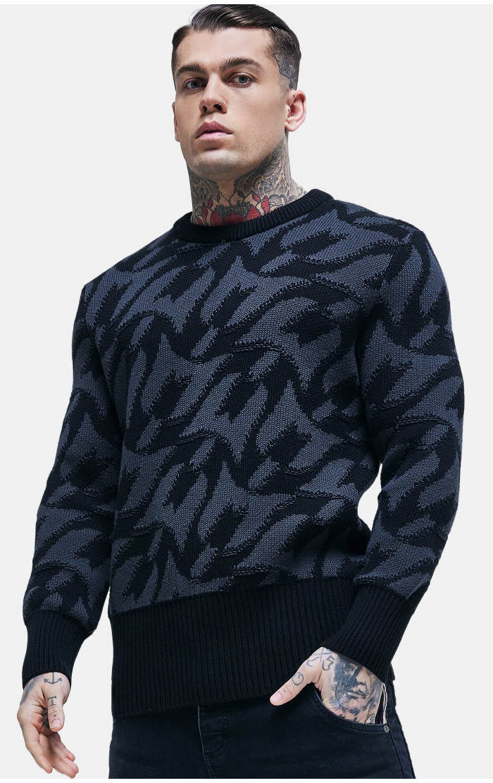 Messi x Sik Silk Męska Czarna Bluza Monogram Chunky Knit Jumper