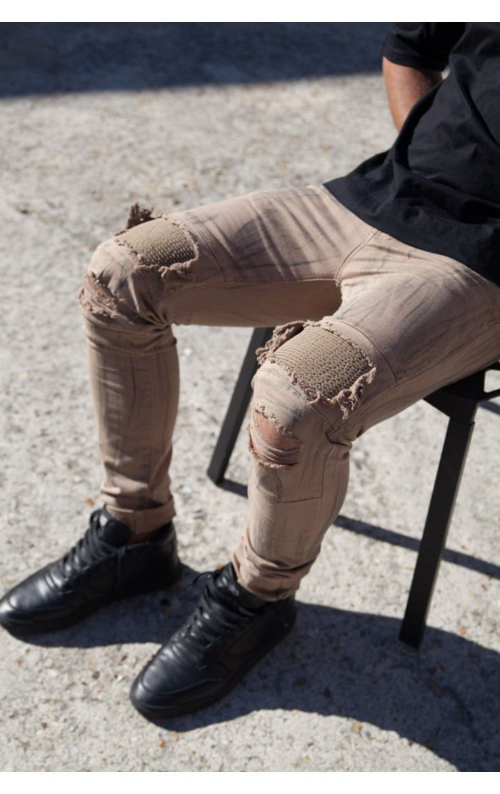 Sixth June Męskie Beżowe Dżinsy Biker Destroy Camel