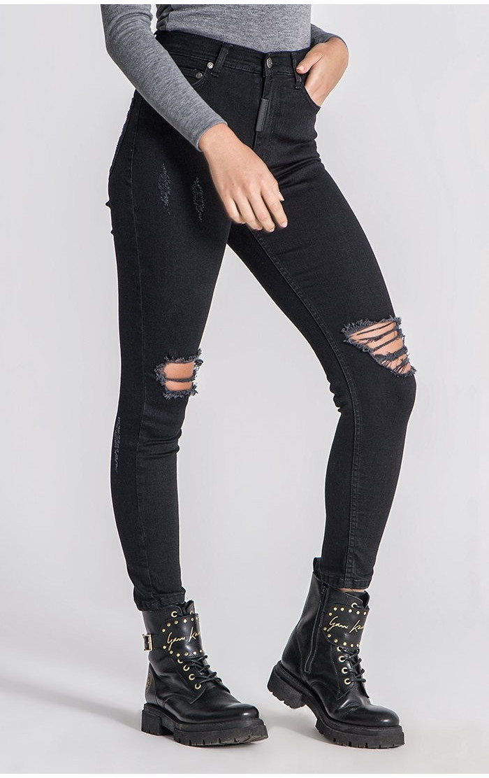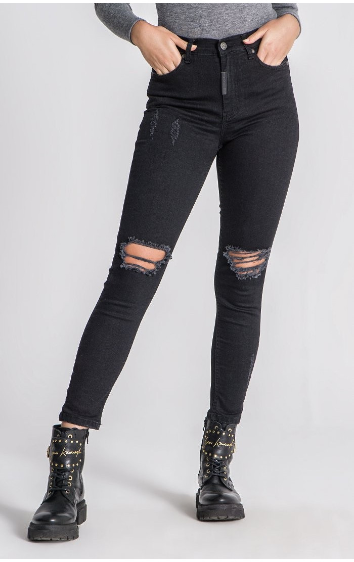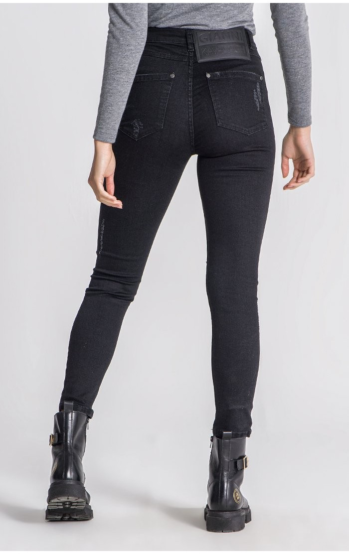 Gianni Kavanagh Damskie Czarne Spodnie Dżinsowe Core Ripped