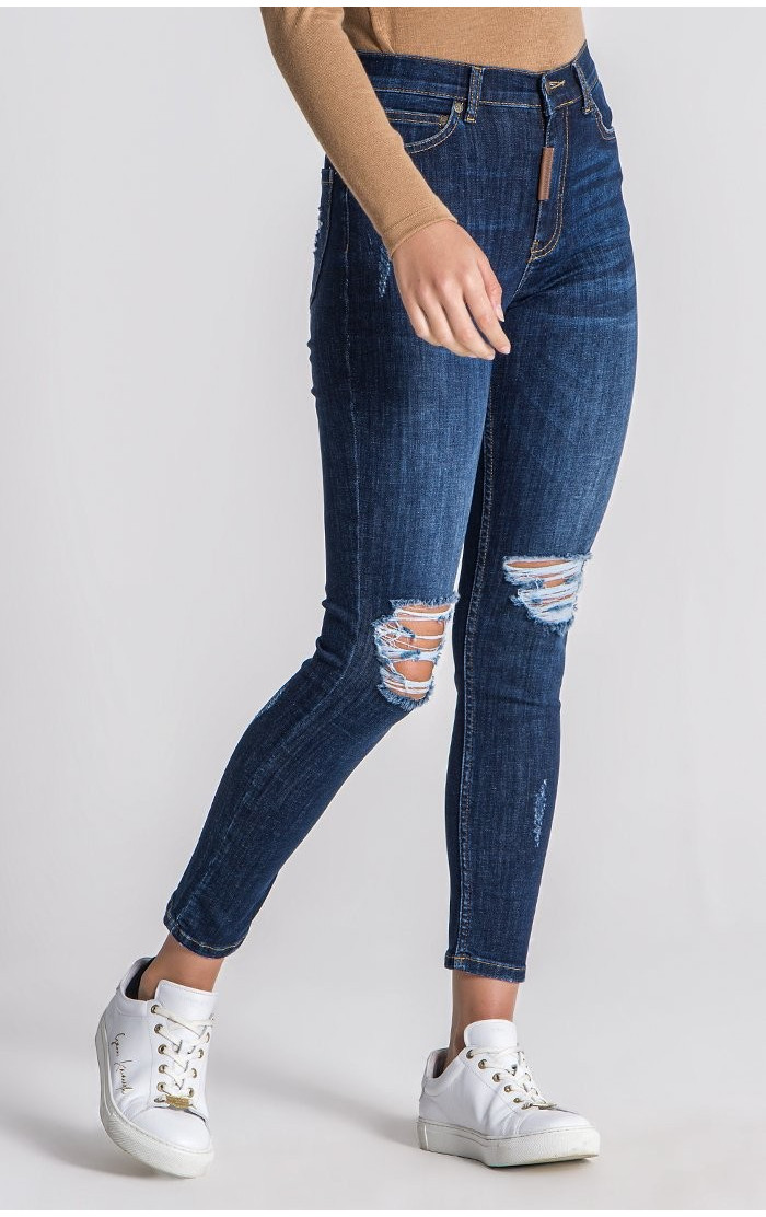 Gianni Kavanagh Dámske Tmavo Modré Core Ripped Jeansy